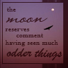 Description: A full moon and a flying hawk on a purple sky, captioned "the moon reserves comment, having seen much odder things".