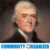 Description: Obama's O graphic in the background, with a hand making a peace sign in the foreground.